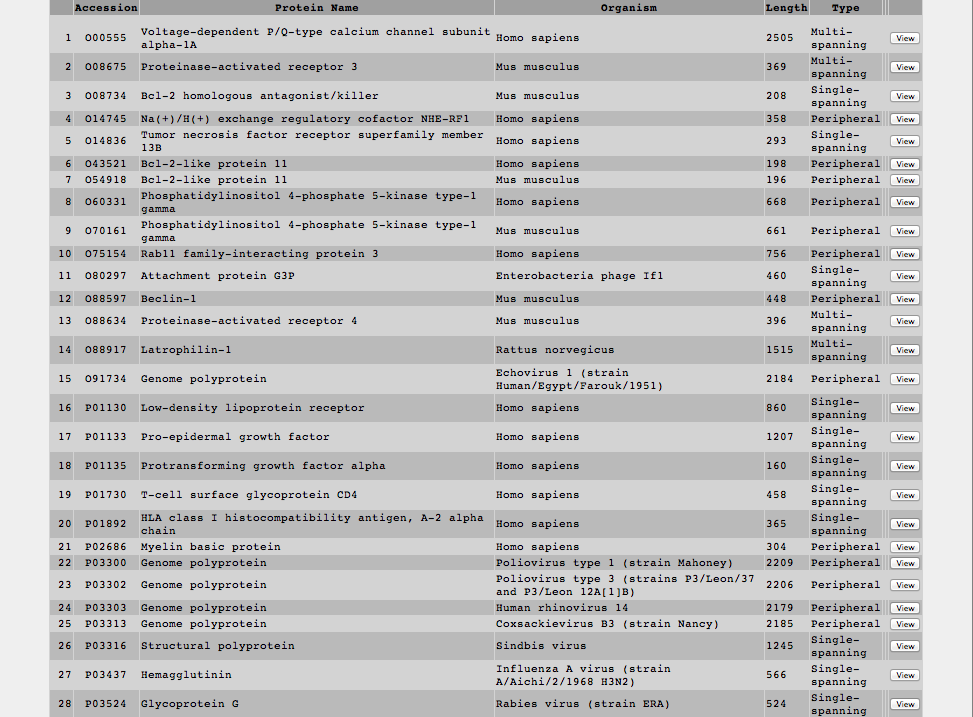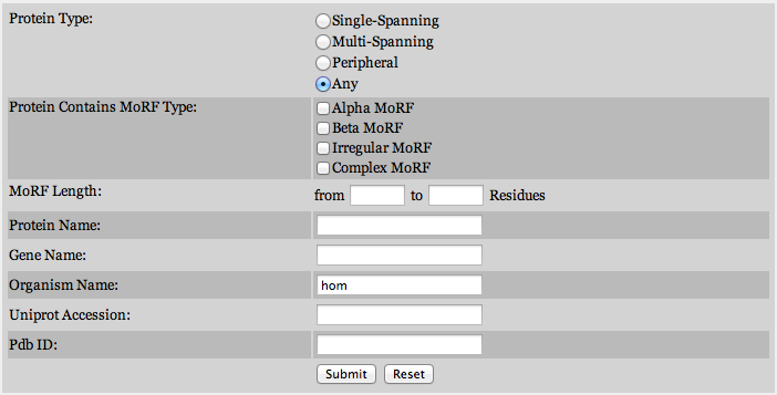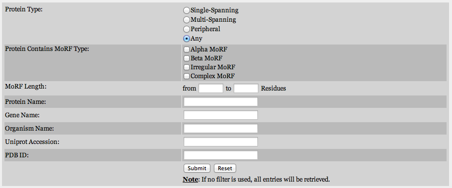 organize and store all membrane proteins that contain MoRFs. We focused in