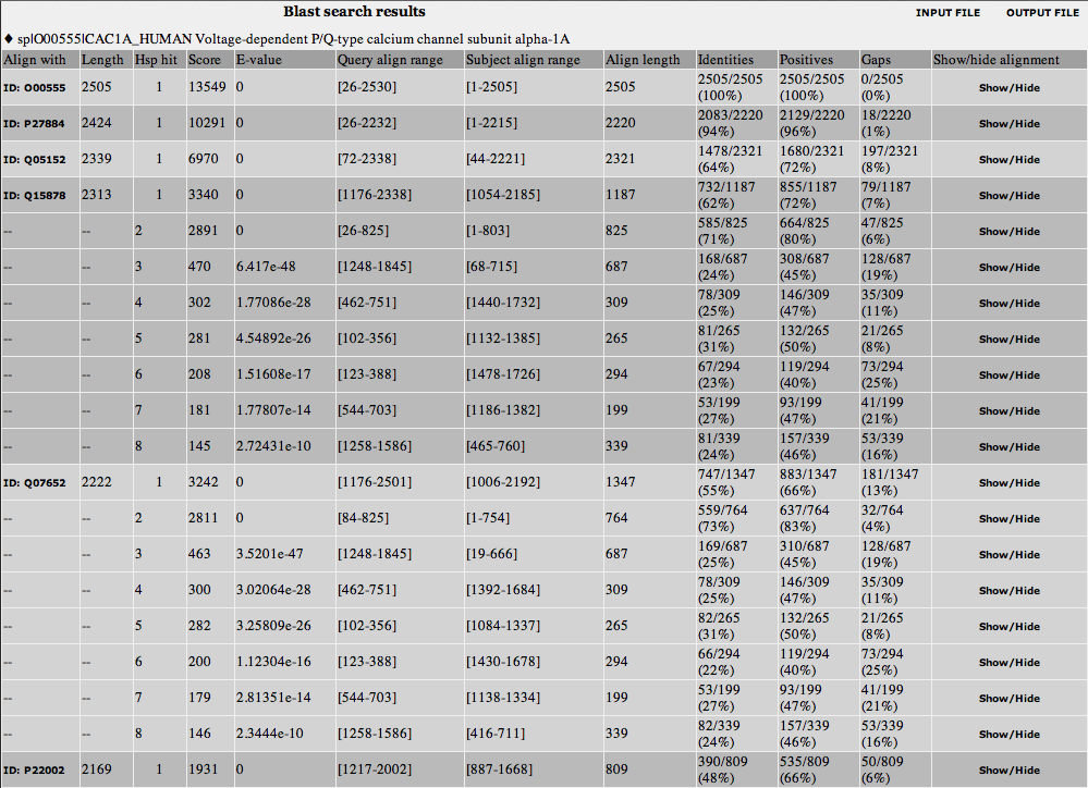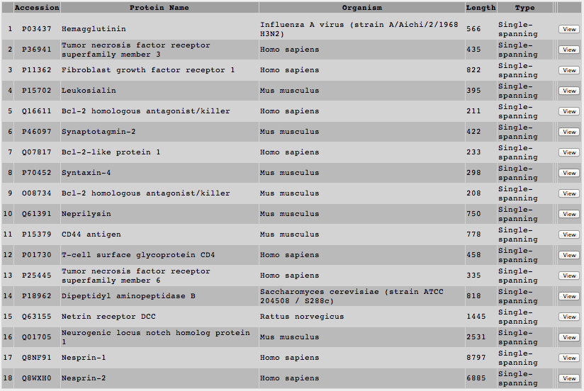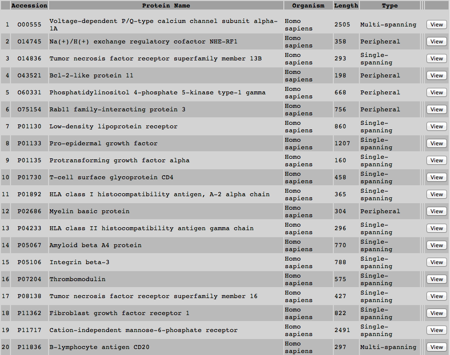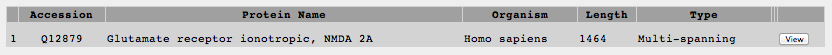 appears, with the list of proteins like the image below. It contains the Uniprot Accession number, the protein name, the organism, the protein length